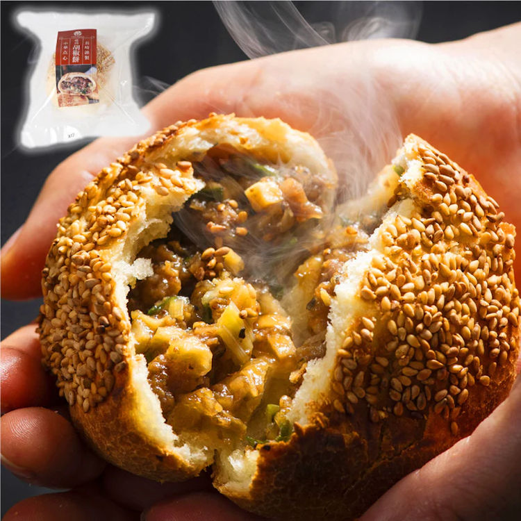 長崎中華街の入口、小粋な中華のお店 “チャイデリカ”。台湾屋台名物の味を一つ一つ手包みで再現しました。ごまをまぶしたサクサクした生地を割ると、大きくカットした長崎県産豚肉にたっぷりのねぎと5種類のスパイスが合わさって、パンチのきいたエスニックな香りで食欲をそそります。1個130gのボリュームで食べ応え十分、簡単調理でお手軽に楽しめるのも魅力です。 |