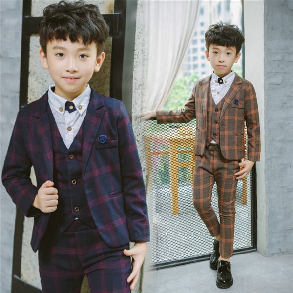 フォーマルスーツ 上下セット タキシード 男の子 スーツ キッズ 子供 3点セット ベスト チェック柄 ジュニア 入学式 入園式 卒業式 七五三 結婚式 発表会