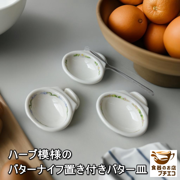 バターナイフ 置き 付き バター 小皿 バタープレート ラベンダー カモミール ペパーミント レンジ可 食洗機対応 美濃焼 日本製 カトラリーレスト スプーンレスト