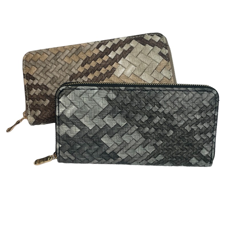 グラデーションになった編み込みデザインの長財布