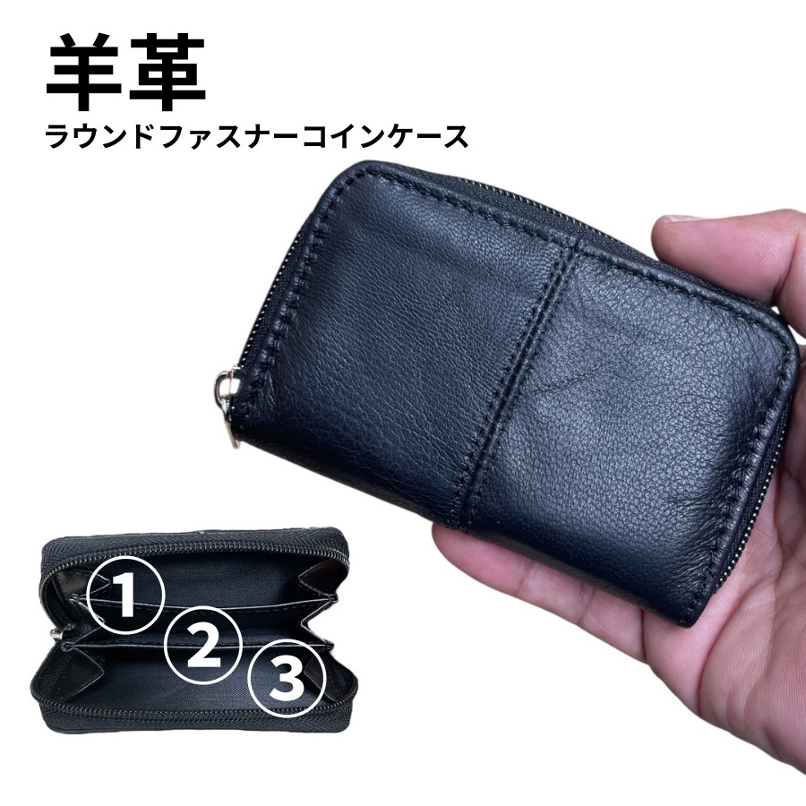 羊革 小銭入れ ラウンドファスナー小銭入れ 柔らかいラムレザー 送料無料