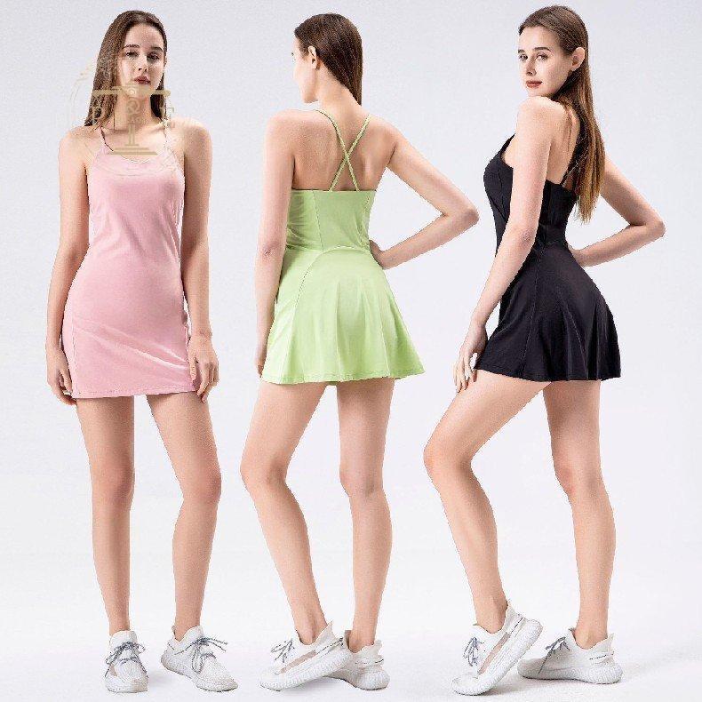 スポーツウェア ワンピース ショートパンツ 2点セット レディース テニスウェア ヨガ 隠しポケット キレイめ フィットネスウェア エクササイズ 涼しい 夏