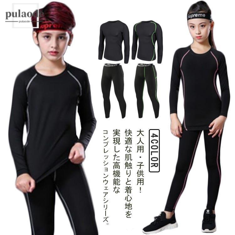 上下セット 春 インナー ウェア 吸汗速乾 コンプレッションウェア スパッツ タイツ 長袖 スポーツ ロングパンツ アンダーウェア 上着 キッズ用 男