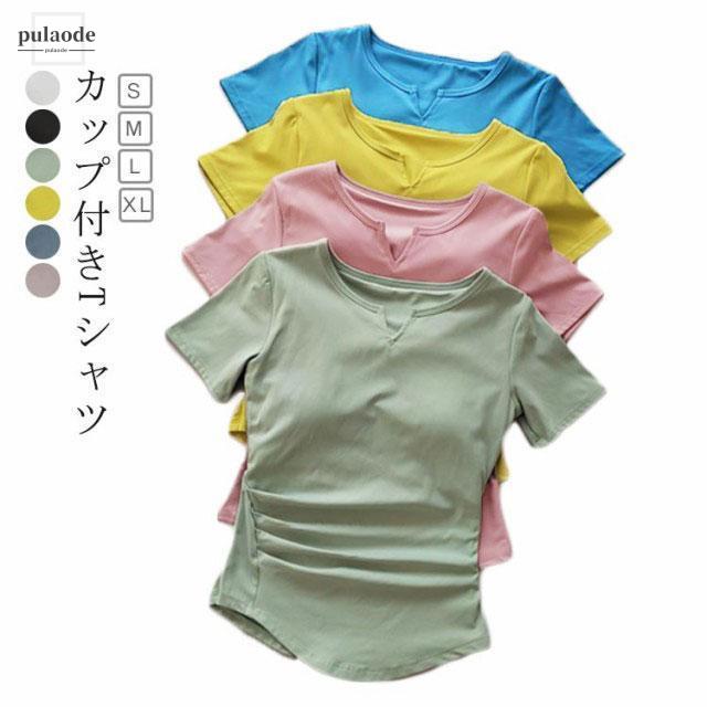 ヨガウェア トップス レディース 半袖ヨガトップス ピラティス ウェア シンプル かわいい パッド付き 無地 へそ出し ストラッピー スポーツウェア