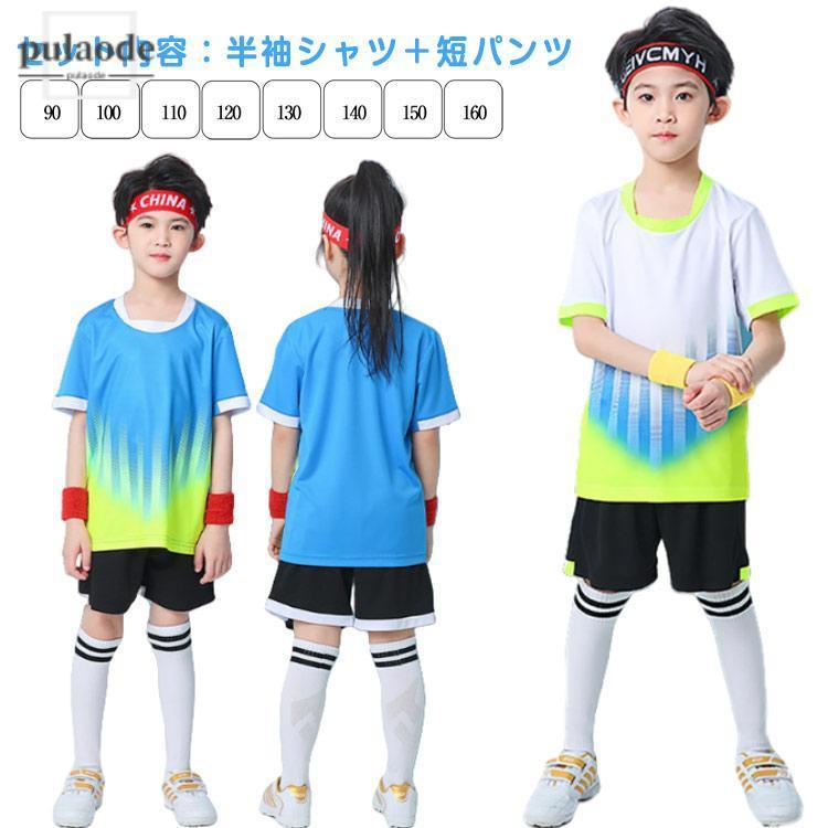キッズ チーム 夏 速乾 半袖Tシャツ 2点セット 子供 上下セット ユニフォーム ジュニア フットサルウエア セットアップ 練習着 ユニフォーム ト