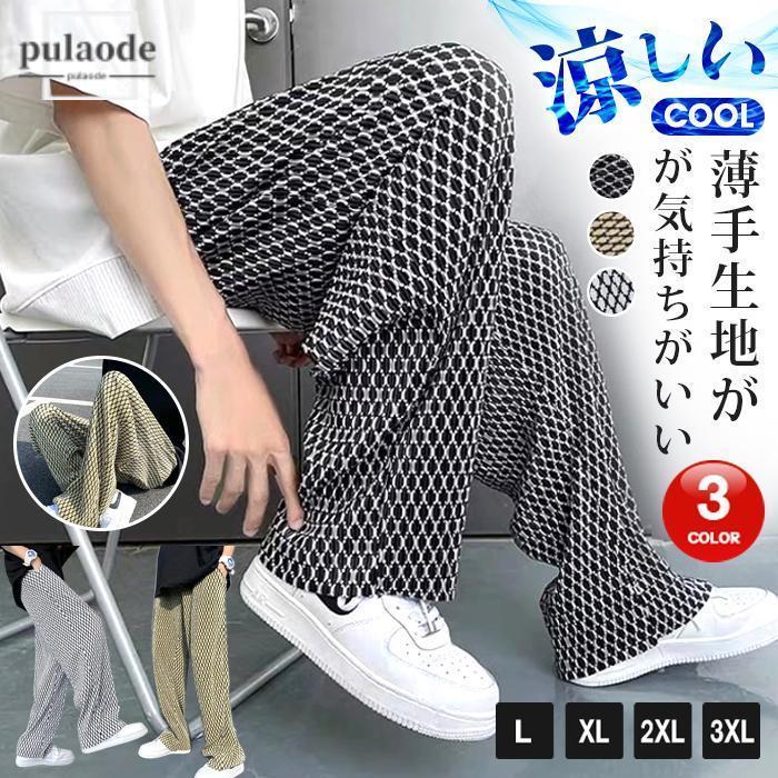 ワイドパンツ メンズ リラックスパンツ 薄手 涼しい ガラガラ 柄々 個性 イージーパンツ ボトムス 夏 秋 春 カジュアル おしゃれ かっこいい メンズファッション
