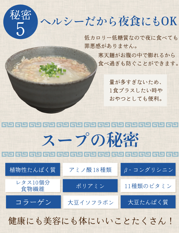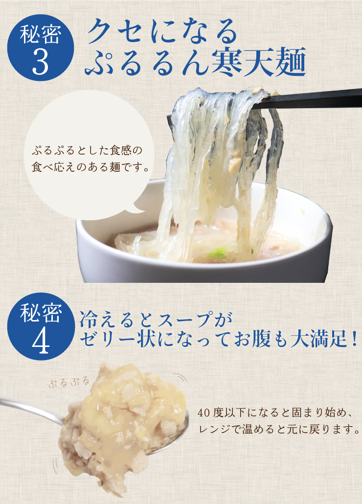 ■原材料名:【乾燥スープ】粒状大豆たんぱく(国内製造)、食塩、難消化性デキストリン、コラーゲンペプチド、乾燥キャベツ、チキンパウダー、ポークパウダー、ホタテパウダー、砂糖、胡椒、ガーリックパウダー、オニオンパウダー、こんにゃくマンナン、植物発酵エキス、食用植物油脂、/調味料(アミノ酸等)、ゲル化剤(増粘多糖類)、ビタミン(C、A、D、E、B1、B2、B6、B12)、葉酸、ナイアシン、パントテン酸(一部に大豆・鶏肉・豚肉・小麦・ゼラチンを含む)