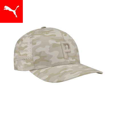 カモ柄が特徴的なフレックスフィット110を採用したテックキャップ。プーマゴルフのアイコンともいえる「P」の立体刺繍をフロントに配置したデザイン。背面側のパネルにはベンチレーションを配置することで通気性を確保できる設計に。スナップバックアジャスターでサイズ調整可能なのも嬉しいポイントです。