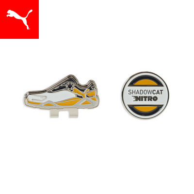 プーマの人気ゴルフシューズ、”シャドウキャット ニトロ”をモチーフにした、遊び心あふれるキャップクリップマーカー。ゴルフシューズをかたどったデザインは、ラウンド中のワンポイントアクセントにもなります。クリップ式の台座は帽子の鍔(ブリム)やウエスト部分に簡単に装着可能。スマートなプレーをサポートします。ラウンド中の気分を上げてくれる、実用性とデザイン性を兼ね備えたアイテムです。