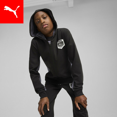 ACTIVE SPORTS コレクションのフルジップパーカーは、グラフィックラバー プリントと安心のジッパーガレージが特徴です。