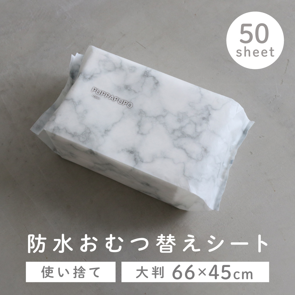 おうちの中ではもちろんのこと、ショッピングモールや公園、レジャー施設などのちょっとしたおむつ替え時にサッとひいてパッと使えるおむつ替えシート50枚セット。汚れや漏れ防止だけでなく、外出先での感染症対策としても。施設に設置されているおむつ替え台に直接赤ちゃんを乗せるのは衛生上ちょっと。。。というママに嬉しい便利アイテム。