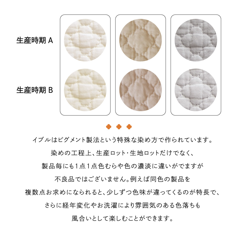 ※本製品は表地にイブル生地を使用しております。このイブル生地は綿100%という素材の特質上、摩擦によって生地の表面に毛玉等が発生することがございます。摩擦の発生を最小限に抑えるためにもお洗濯の際は必ず洗濯ネットをご使用ください。