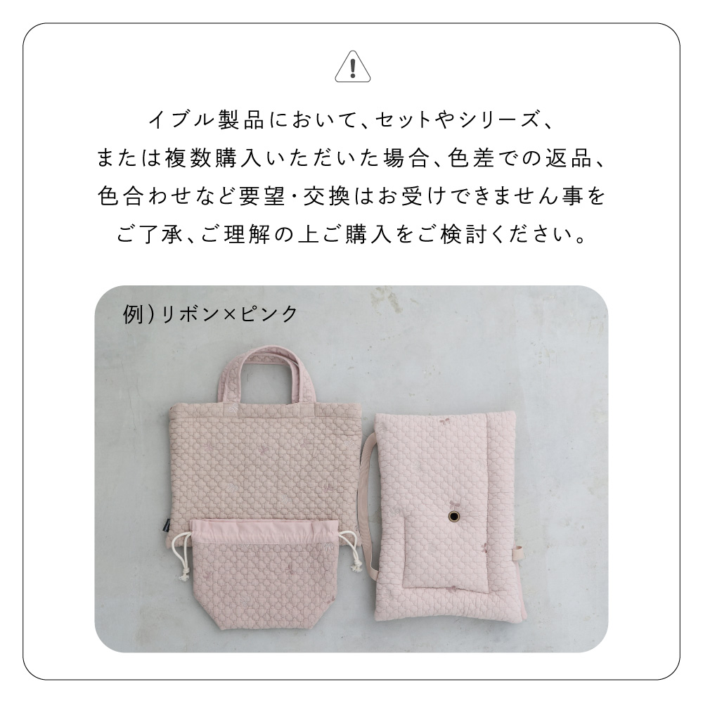 やさしいイブルの風合いにかわいいポコポコキルティングのおしゃれなレッスンバッグ。小さなお子さま〜高学年のキッズが持ってもおしゃれに決まるヌビバッグです。