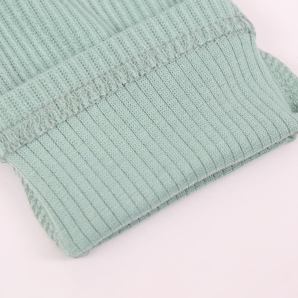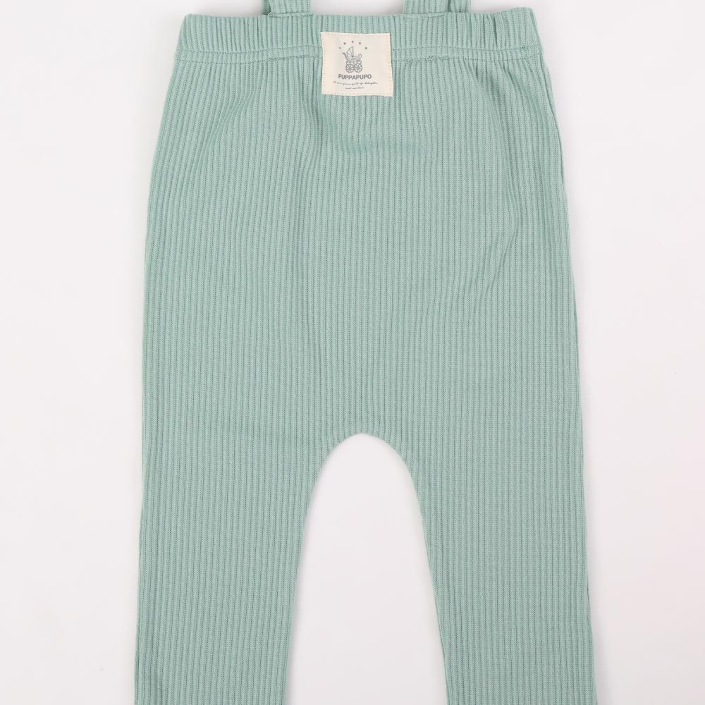 伸縮性のある柔らかリブ素材で着せやすいサロペット風リブレギンス。リブ生地の特徴は伸びが良いので、赤ちゃんの足にやさしくフィットして気持ちのいい履き心地。