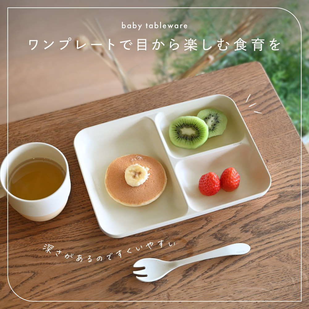 食べムラのある赤ちゃんのお食事には見た目の可愛さも欠かせません。仕切りのあるワンプレートなら汁気のあるものも混ざらず盛り付けOK、しかもプレートって洗い物も少なくて済むのでエコだしママにも嬉しいアイテム。深さがあるので、初めてのスプーンやフォークでもすくいやすい設計なのもうれしいポイント。