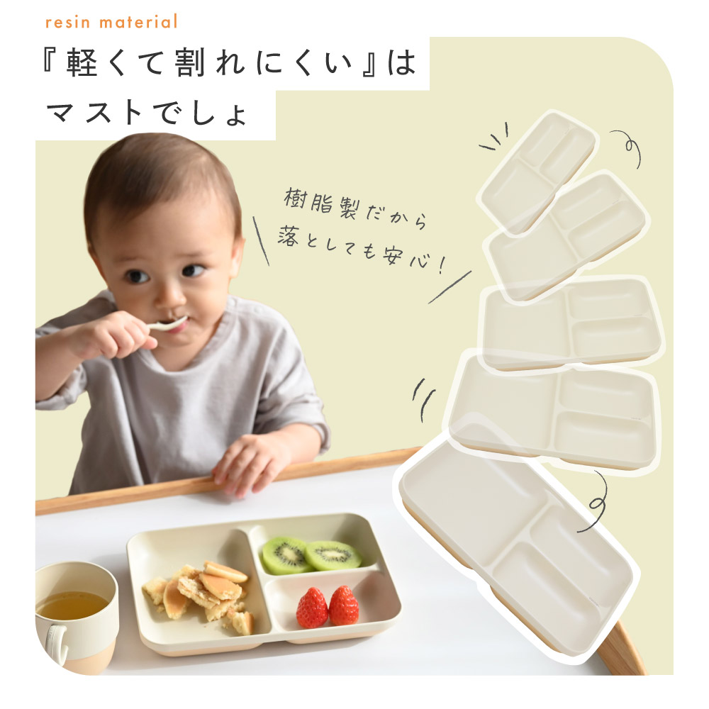 ベビーのお食事タイムはとにかく大変!お皿を投げたりひっくり返したり。。。樹脂製のお皿なら万が一落としてしまっても割れにくくて安心。イヤイヤ期のお食事にマストな『軽くて割れにくい』樹脂製の食器です。