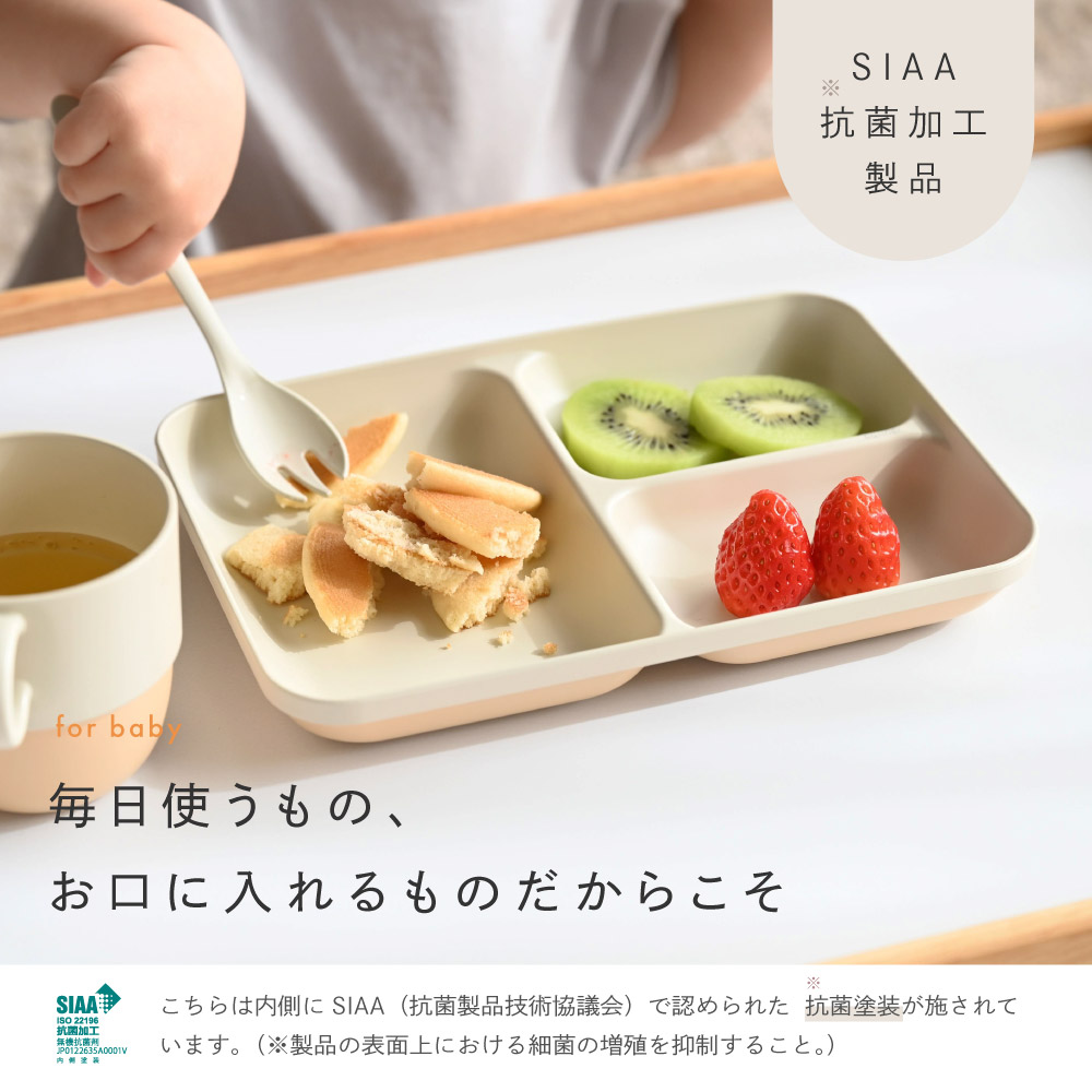 こちらは内側にSIAA(抗菌製品技術協議会)で認められた抗菌(※製品の表面上における細菌の増殖を抑制すること。)塗装が施されています。毎日使うもの・お口に入れるものだから、ベビーグッズに抗菌加工は嬉しいポイントですよね。