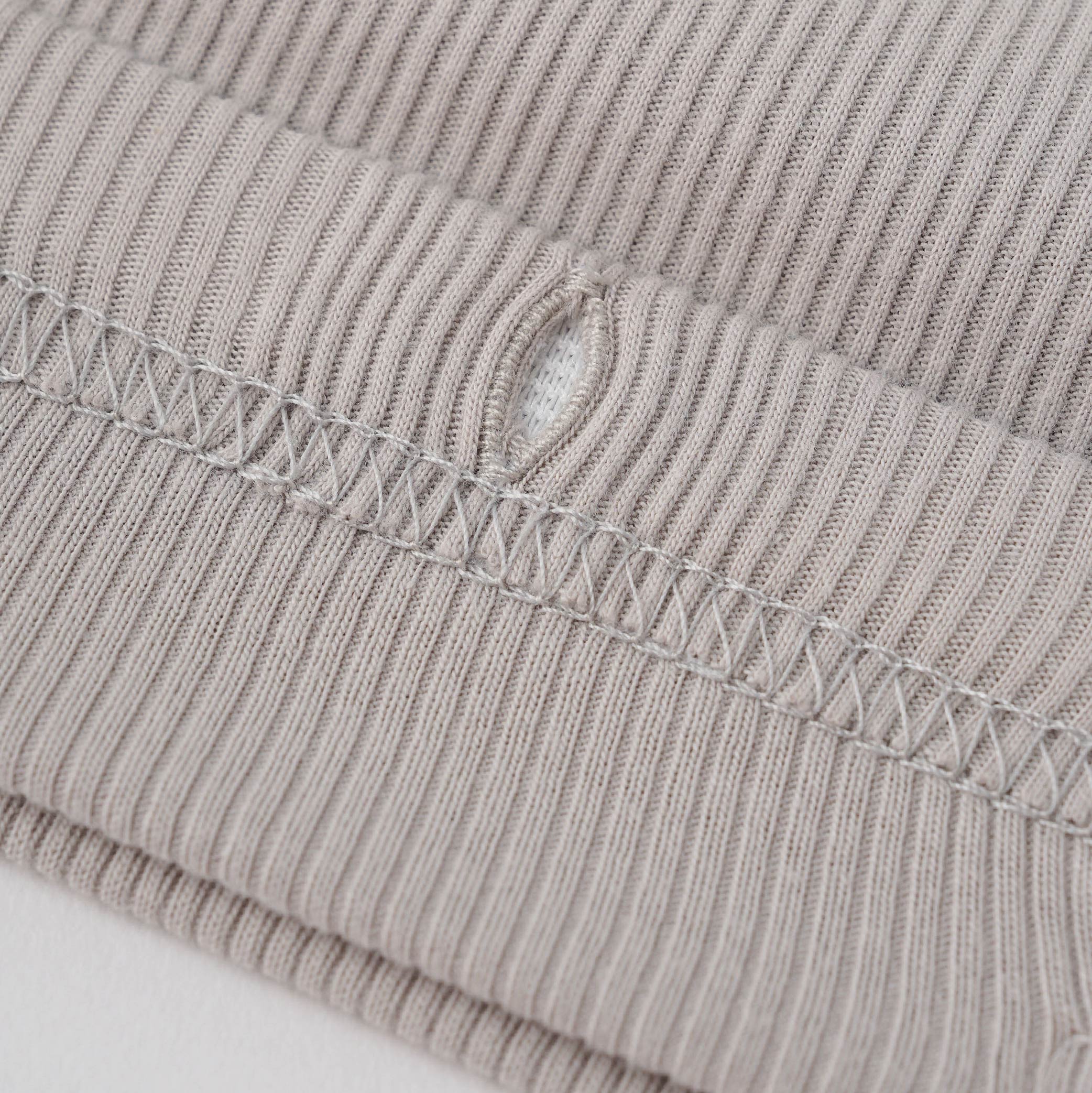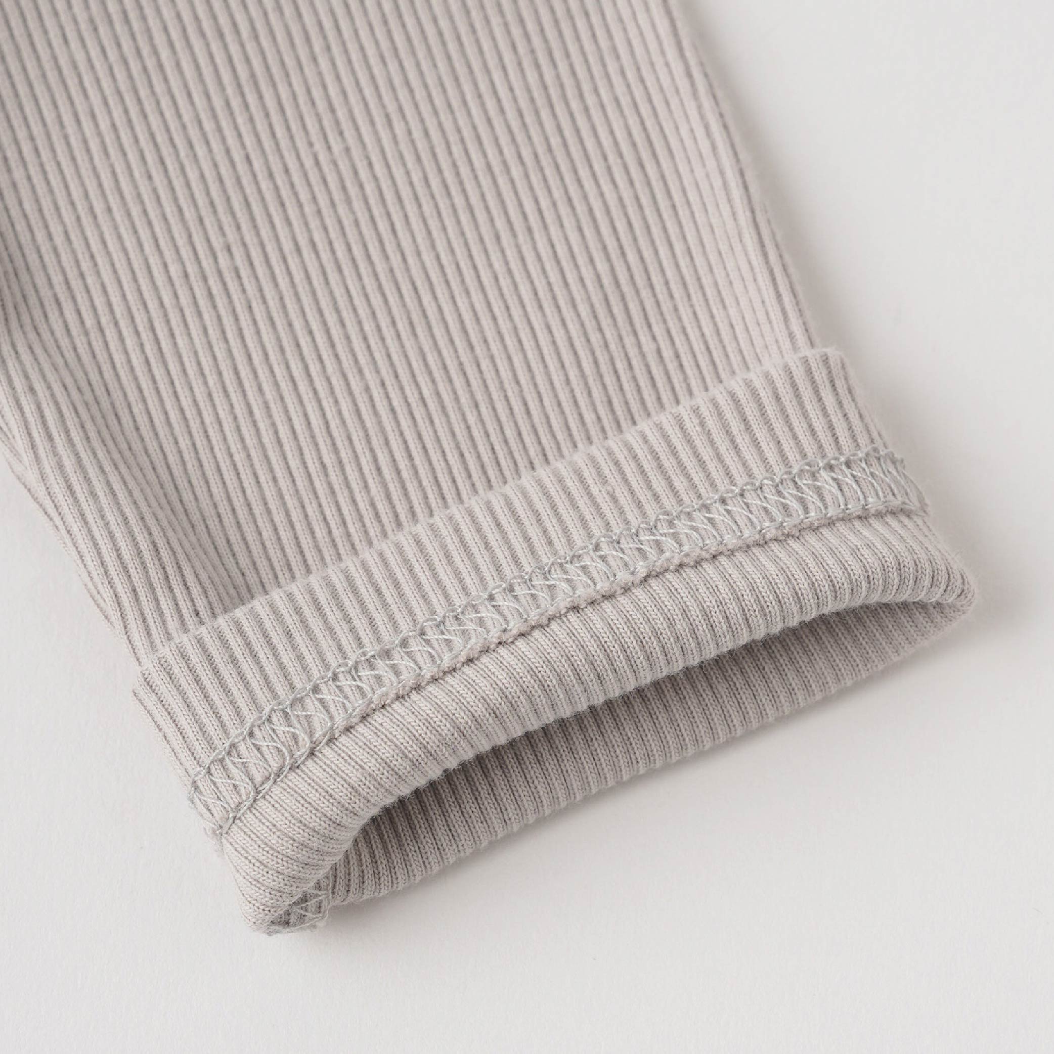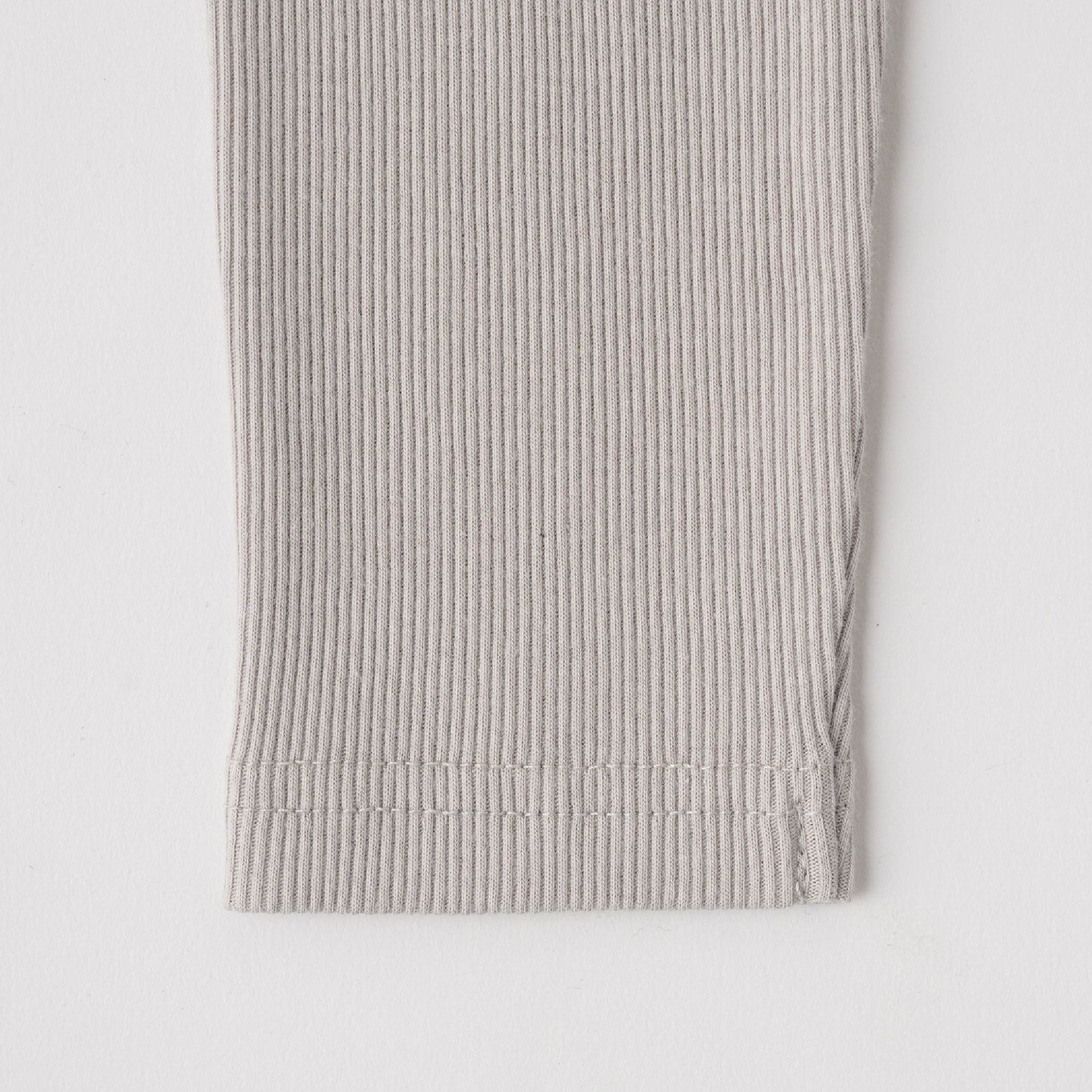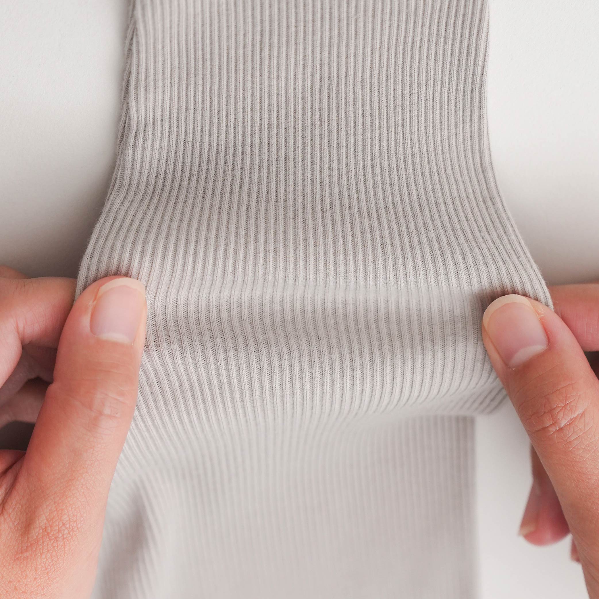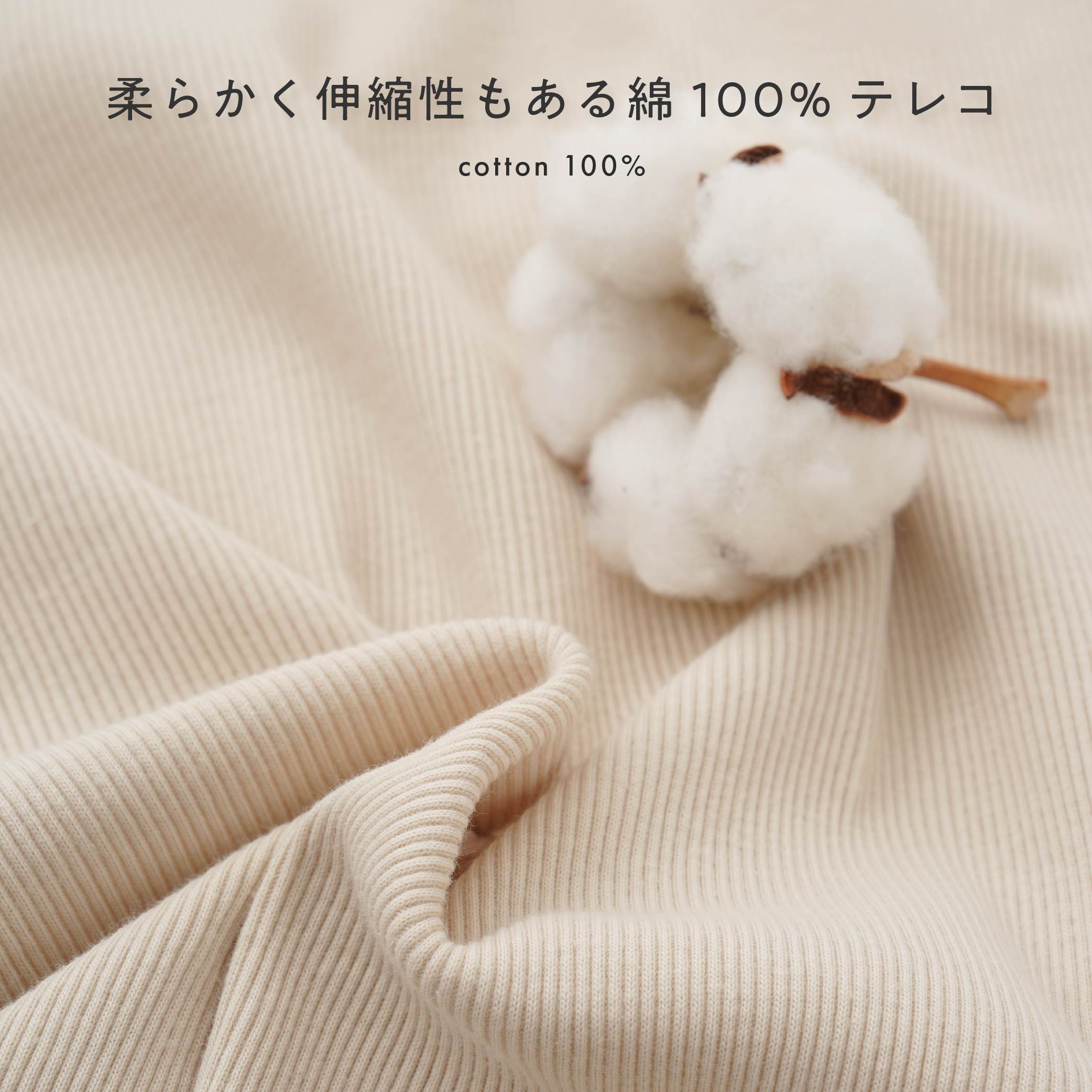 柔らかでしなやかな伸縮性のあるリブ編みのテレコは、肌触りが良く、身体に心地よくフィットします。シワになりにくく、型崩れしにくいのも長所です。