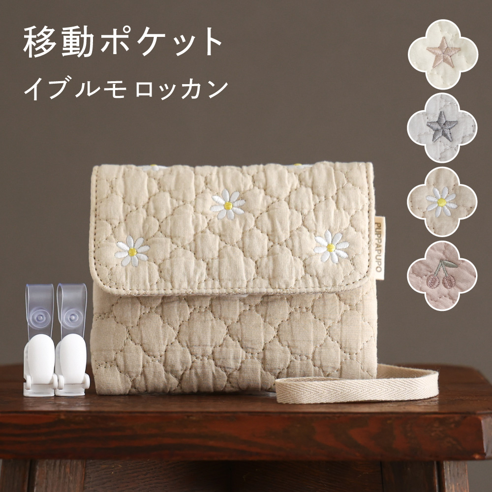 やさしいイブルの風合いにかわいいポコポコキルティングのおしゃれな移動ポケット。通園・通学・外遊びに、小さなお子さま〜小学校高学年のキッズが持ってもおしゃれに決まります。