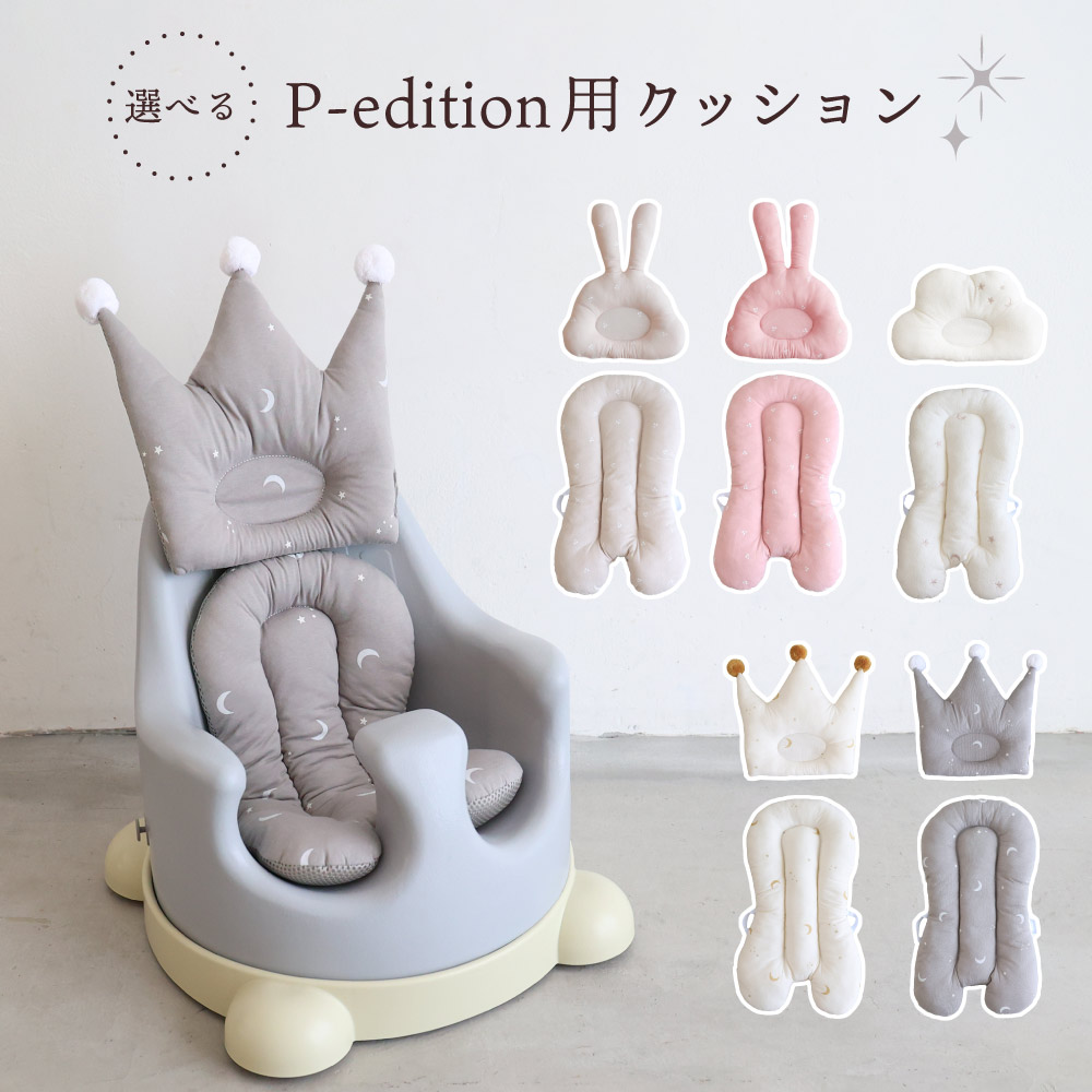 人気のベビーチェア「P-edition」用の専用のクッションです。頭部分のヘッドクッションと、座面部分のシートクッションがあり、ヘッドとシートをそろえても、ヘッド・シート別でもお好きな組み合わせでご使用いただけます。