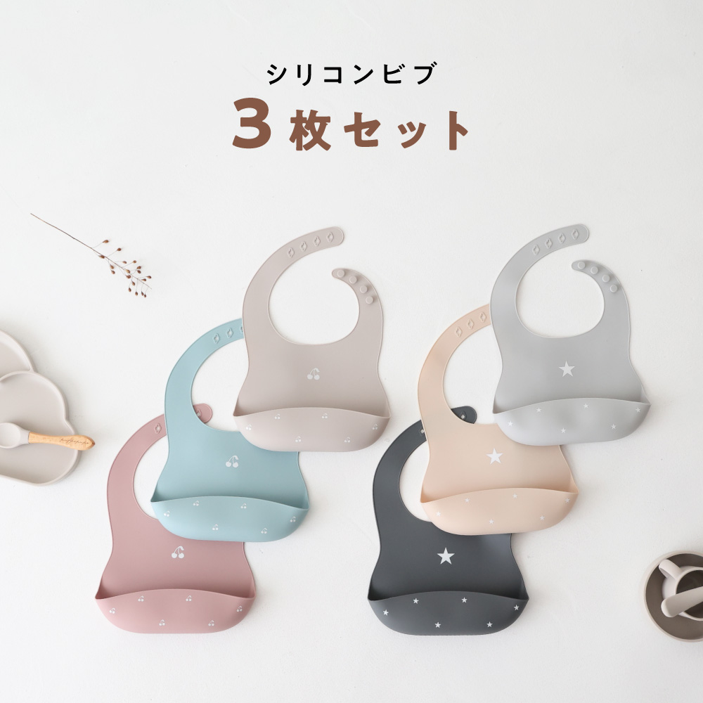 保育園などでも使えるシリコンビブ、3枚セットでこのプチプラなお値段は見逃せないポイントです。