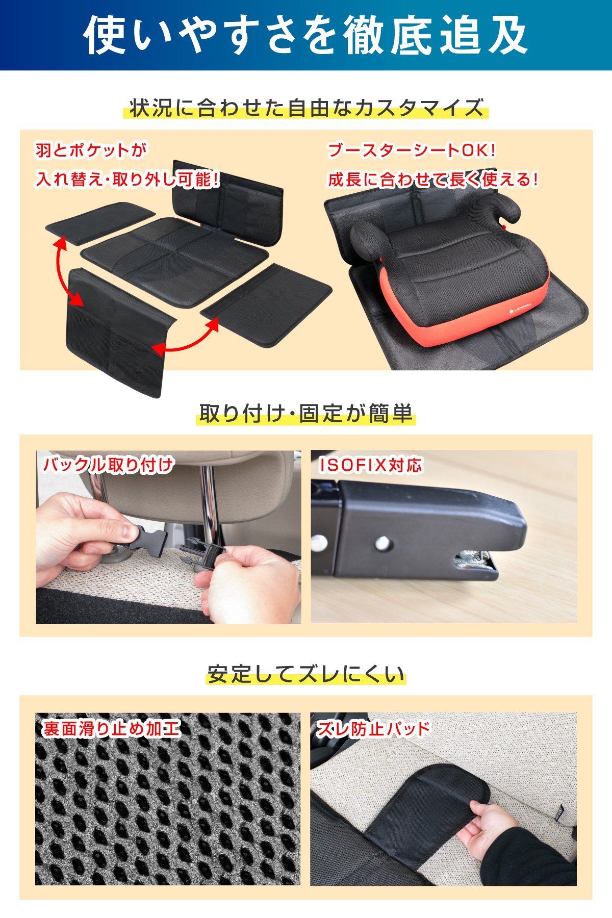 ●自動車整備士の山崎氏が監修し チャイルドシート 設置による傷、凹みを防ぐ