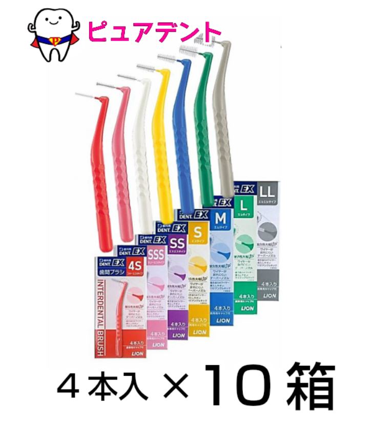 「選べる!」ライオン DENT . EX 歯間ブラシ 4本入 10個 4S(レッド) SSS(ピンク) SS(ホワイト) S(イエロー) M(ブルー) L(グリーン) LL(グレー)