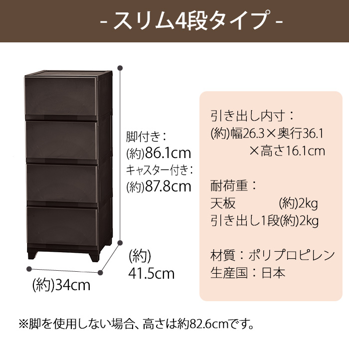 | 商品名 | 壁付収納チェスト 脚付き/キャスター付 4段 |