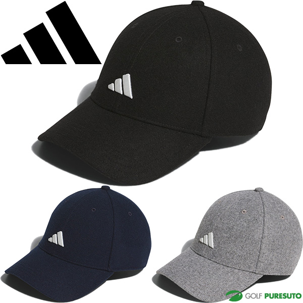 寒い日は、頭から防寒対策できる、このアディダス ゴルフのボールキャップがおすすめ。保温性を高めるウール混フランネルの、クラシックなゴルフスタイルにぴったりのキャップ。汗をコントロールしてバックナインまで集中力を切らさない、adidas AEROREADYが採用されている。