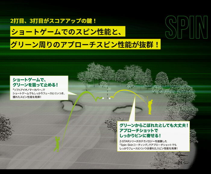 【 2 】優れたアプローチスピン性能!ソフト化したアイオノマーカバーとSpin Skin コーティング