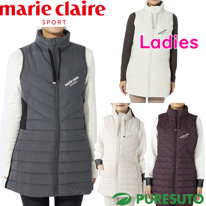 レディース マリクレール スポーツ marie claire sport フルジップ 素材切替 中綿 ロングベスト 444-703 444703 アウター 体型カバー スポーツ