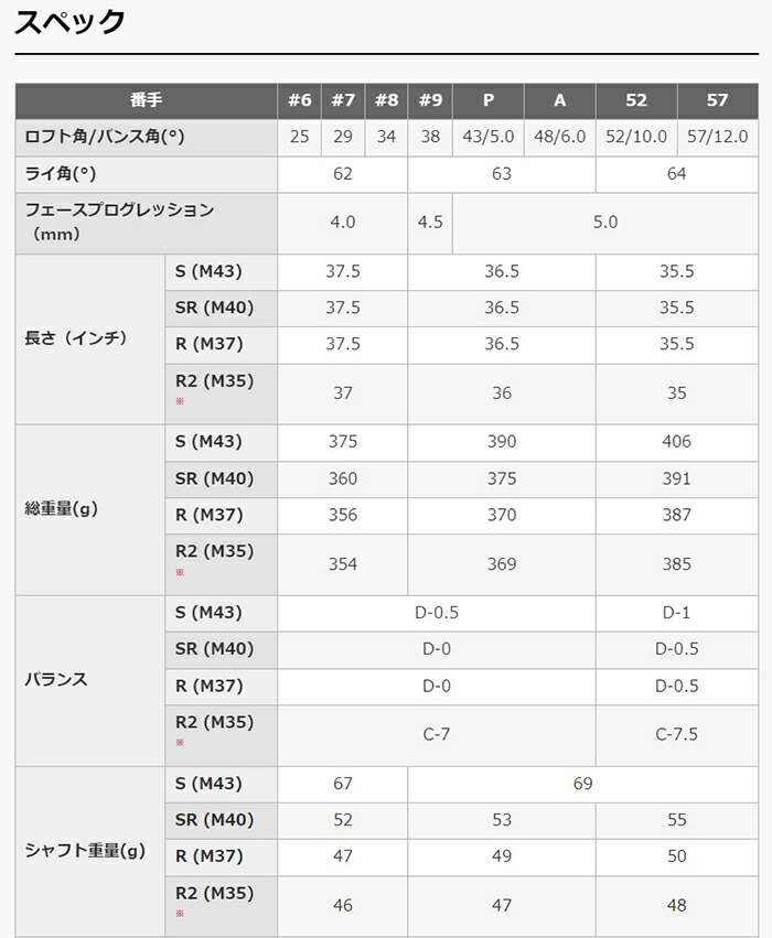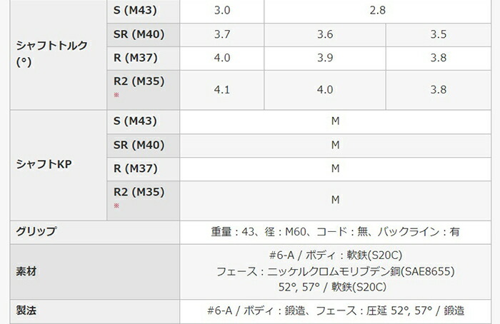 ■製法:#6-A / ボディ:鍛造、フェース:圧延 52°, 57° / 鍛造
