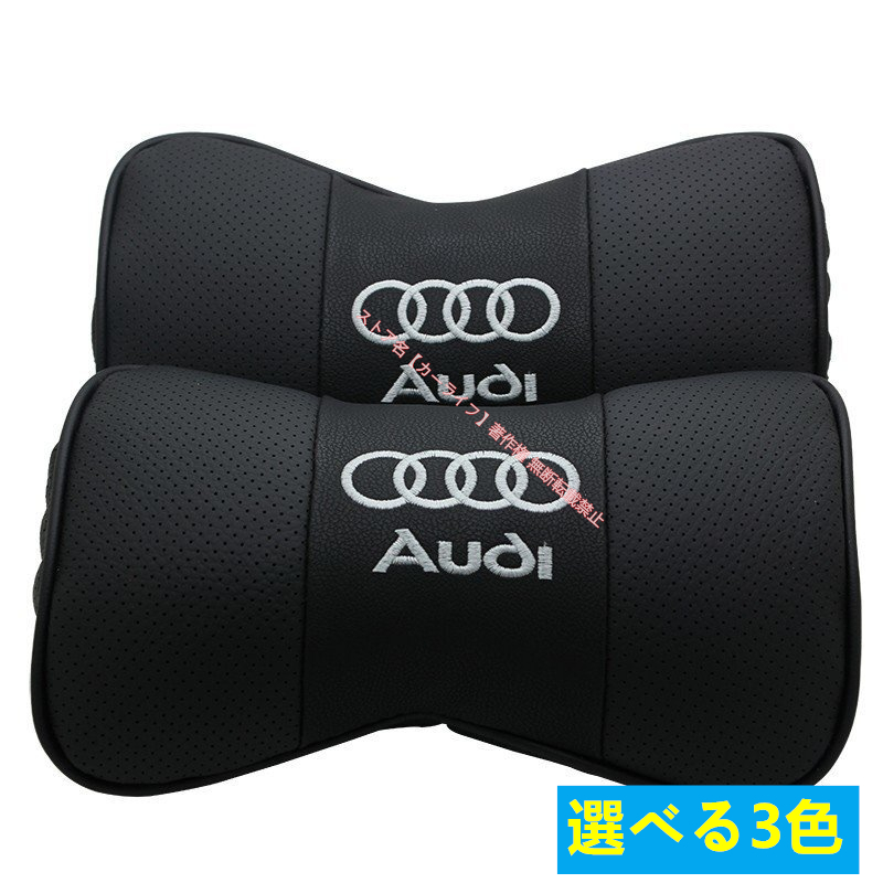 新品 2個セット アウディAUDI レザーネックパッド 汎用 車載首枕 ヘッドレスト 刺繍ロゴ入り 刺繍工芸 選べる3色