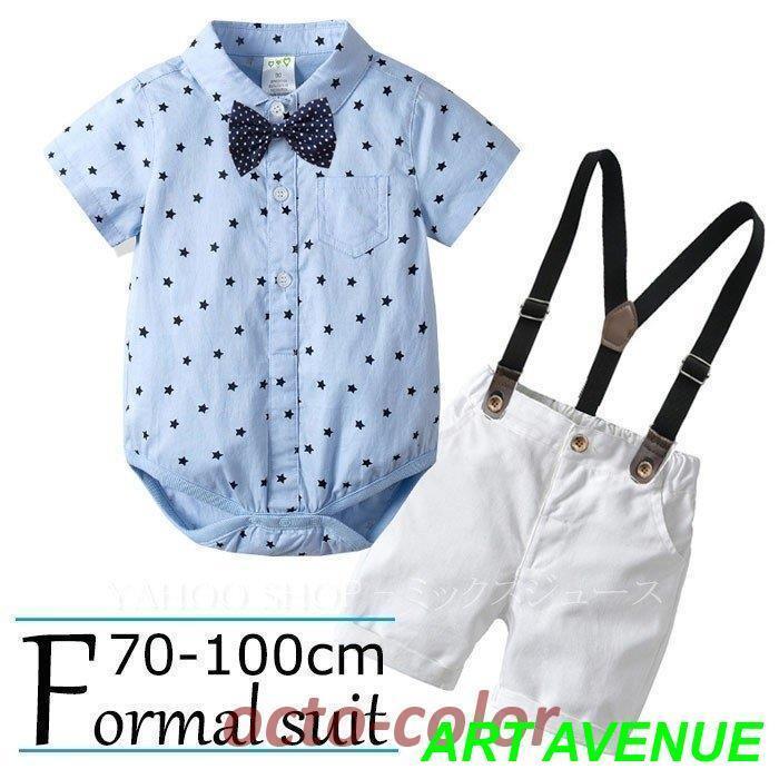 紳士風 ロンパース 星柄 カバーオール 蝶ネクタイ 上下セット おしゃれ 出産祝い 結婚式 誕生日 お宮参り お食い初め 子供服 男の子 ベビースーツ