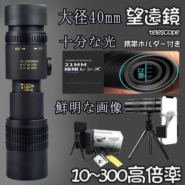 単眼鏡 望遠鏡 高倍率10-300高倍率 耐久性 耐衝撃 高解像度 高透過率 望遠レンズ 防水霧 観戦 観察 運動会 コンサートスポーツ