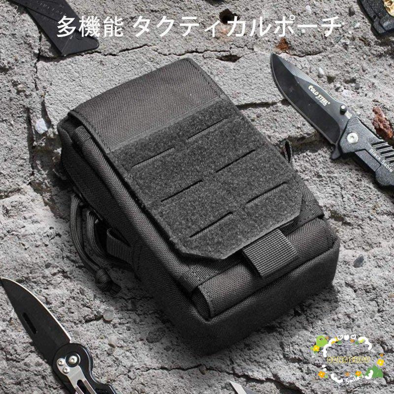 多機能 タクティカルポーチ ブラック ベルト装着 スマホ対応 ウエストポーチ ミリタリー ツールバッグ 登山 小物入れ