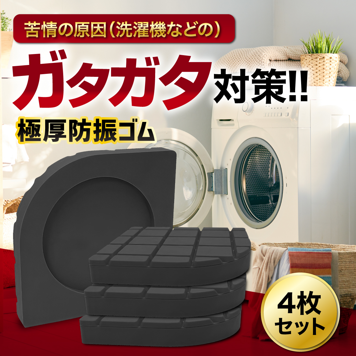 洗濯機 振動防止ゴム 防振 高さ調整 防震対策 防音 騒音 マット 4枚入り