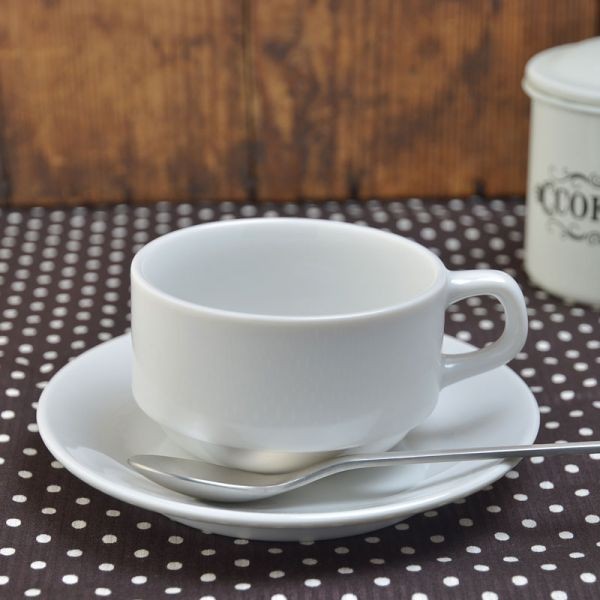 ソーサーはかけにくい玉渕(たまぶち)の形状になっているので業務用にもおすすめです。