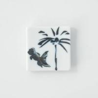 和紙に印刷した絵柄をうつわに写し、ガラス釉を施して1340度で焼付けています。高温で焼くので絵柄が柔らかく仕上がるのが特徴。花火と金魚は、白磁と相性のよい伝統的な呉須(コバルト)で描きました。微妙な環境の変化(焼成温度や焼成位置)により濃淡やにじみの度合いが変化するため、一つひとつ少しずつ表情が異なります。やきものの個性としてお楽しみいただければうれしいです。ご理解のほどお願いいたします。