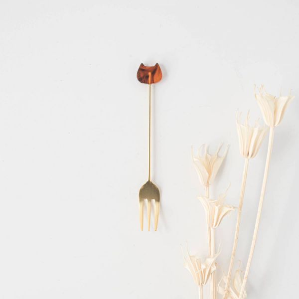 マーブル模様のネコとチャームが特徴のカトラリー。