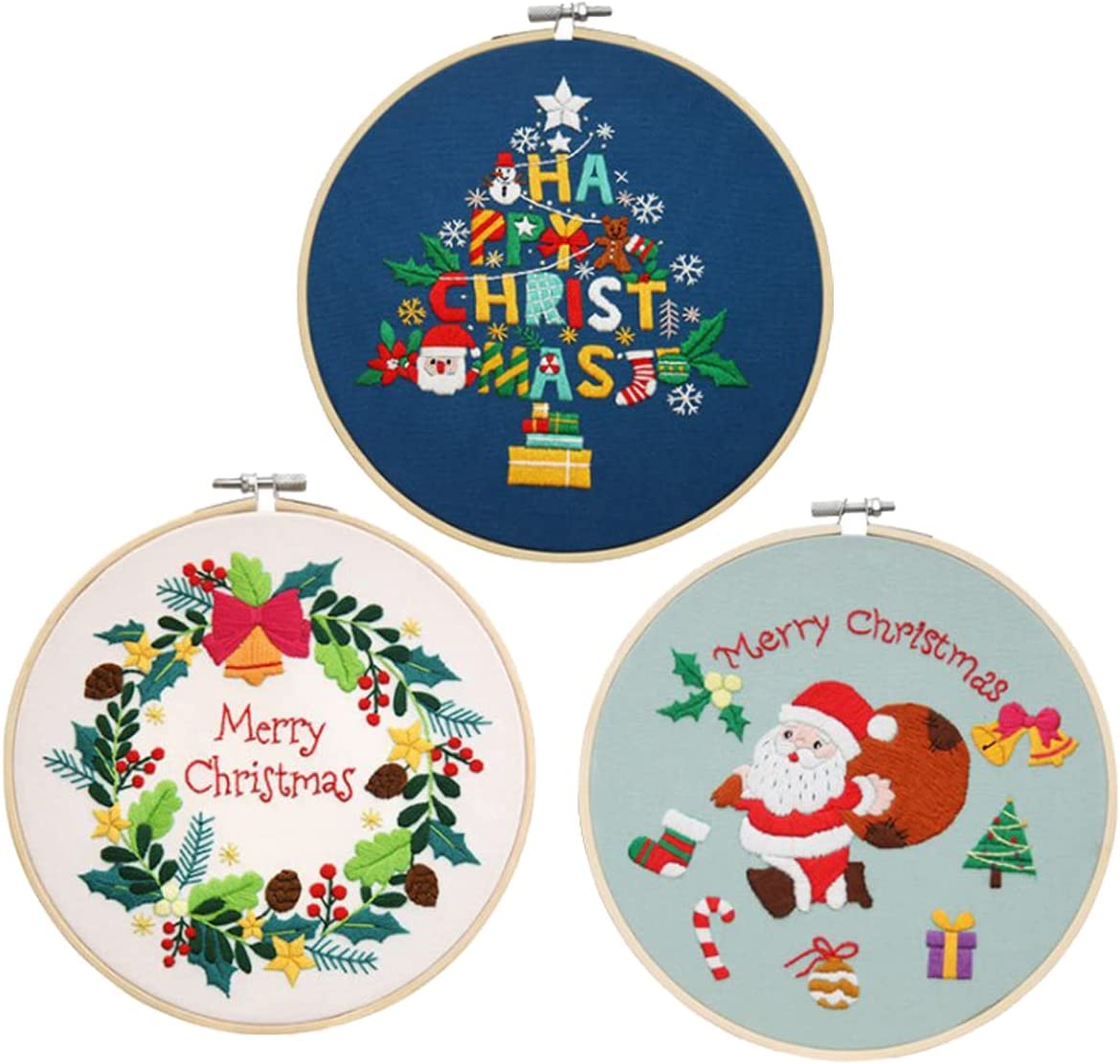 クリスマス 刺繍キット 3種類 20cm 北欧 サンタクロース クリスマスツリー クリスマスリース 刺繍枠 刺しゅう枠 図案 初心者