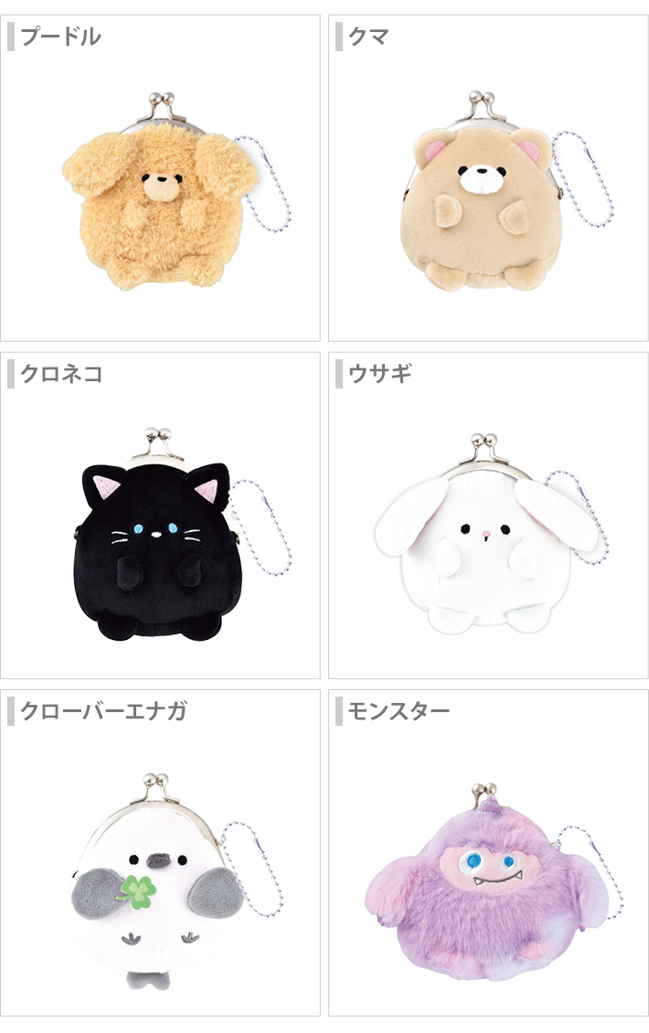 ぬいぐるみがま口コインケース 6柄 [M便 1/4]