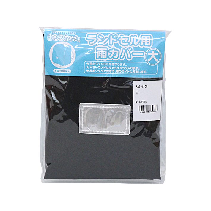 まもるちゃん ランドセル用 雨カバー 反射ワッペン付き 黒 RA3-1300 [M便 1/2]
