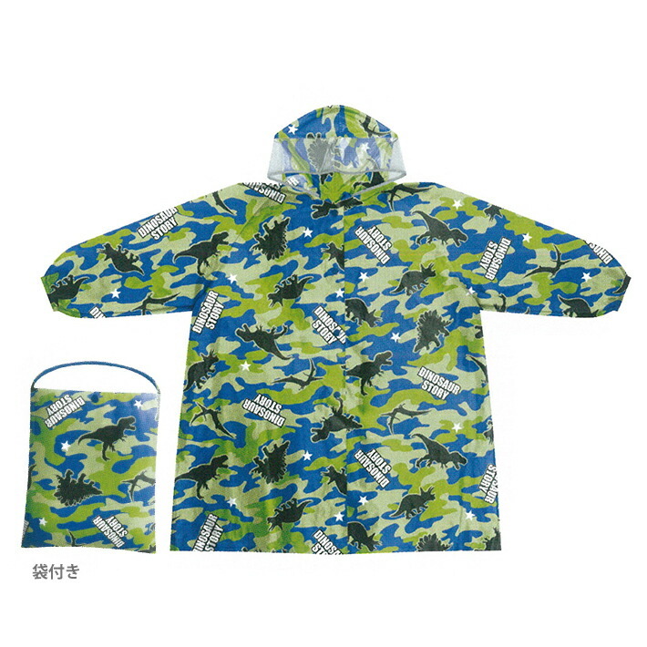 キッズ用レインコート DINOSAUR STORY柄 Sサイズ イエローグリーン 101304 [M便 1/1]