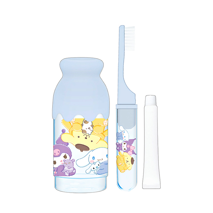 Sanrio ハブラシ 歯磨き セット おしゃれ かわいい ミルク瓶 女の子 持ち運び 旅行 お出かけ コンパクト 歯ブラシ はみがき エチケット