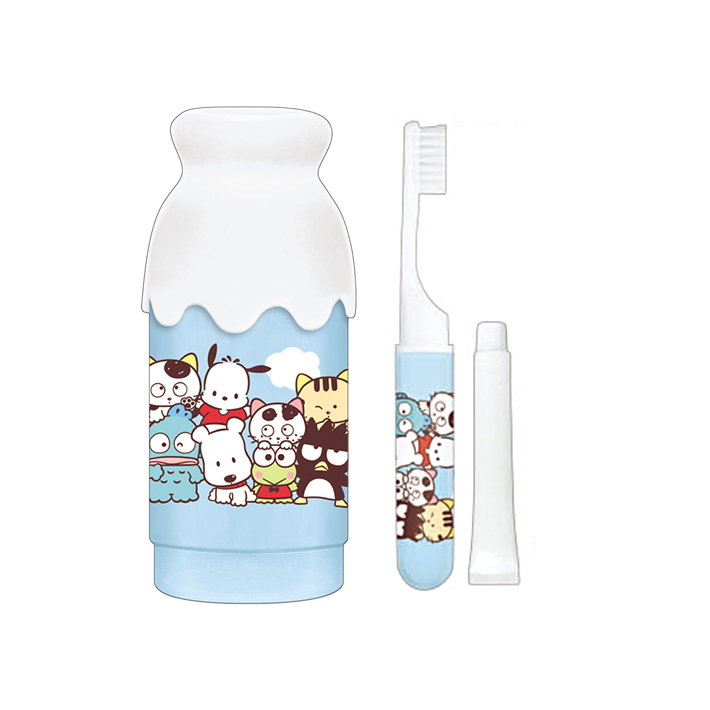 サンリオキャラクターズ×タマ&フレンズ ミルクびん型はみがきセット わいわいひろば柄 130094 [M便 1/3]