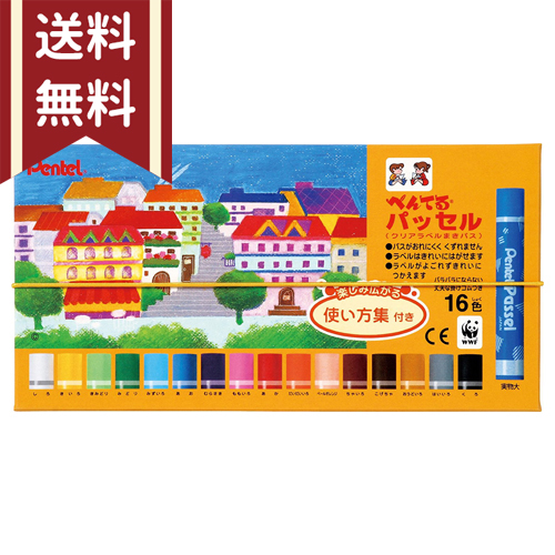 ぺんてる パッセル<クリアラベル巻きパス> <パステル> 16色セット ゴム掛け GHPAR-16 [M便 1/2]