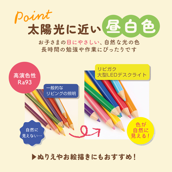 太陽光に近い昼白色でお子様の目にもやさしく、学習に最適です◎