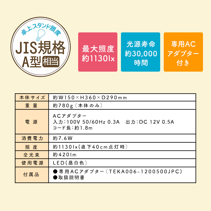 専用ACアダプター付子ども 子供 こども 小学生 中学生 高校生 大学生 ビジネス 家庭 高演色性 簡単 見やすい 手芸 フレキシブル 新入学 卓上 入学準備 おしゃれ シンプル 学習 男の子 女の子 勉強 机 白 照明 学童 文具 キッズ