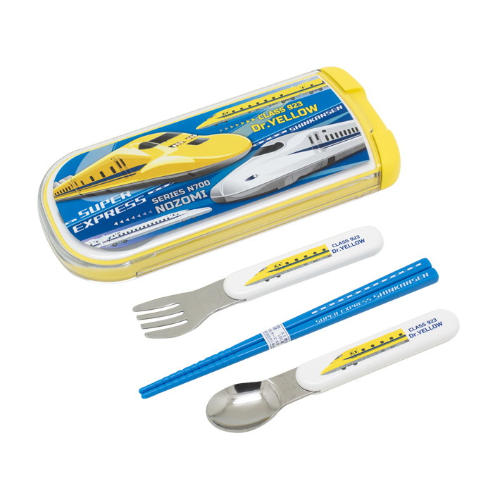 新幹線柄のお箸・フォーク・スプーンがケースに入ったセットです。
